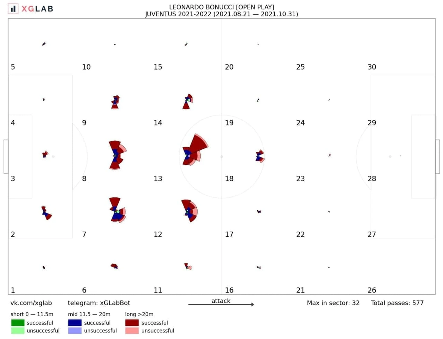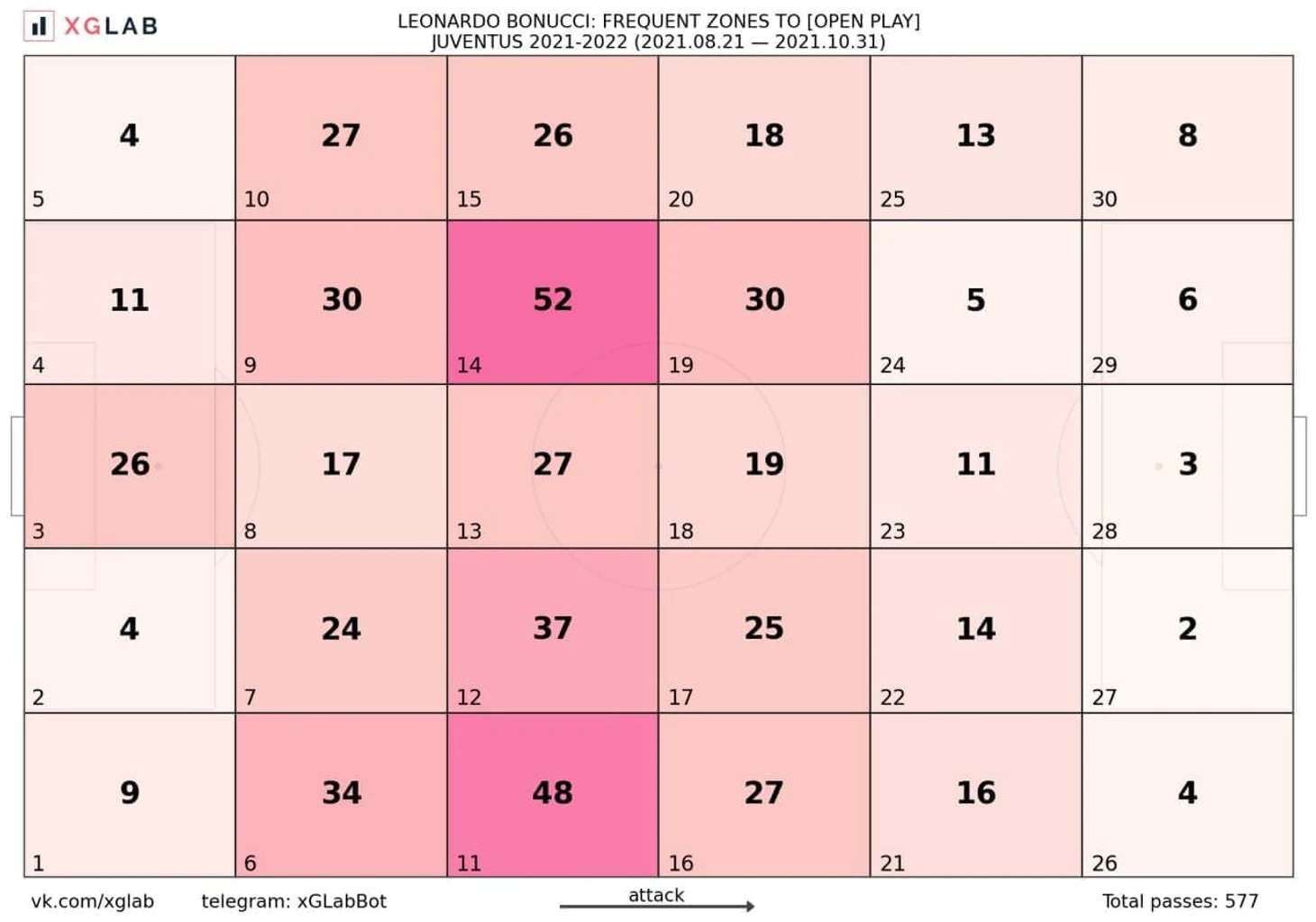 Прикрепляю графики: на нечётных номерах — сонары и зоны, из которых идут пасы, на чётных — зоны, в которых находится адресат. Сравниваем Куарту и Миленковича с Бонуччи как эталоном пасующего ЦЗ. Данные актуальны по состоянию на 1 ноября 2021 года.