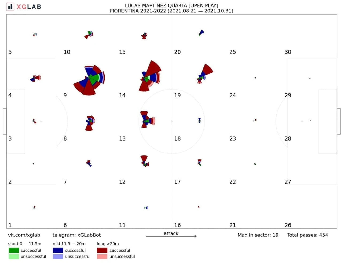 80-й перцентиль по продвигающим пасам (5,29 за игру; в "Фиорентине" больше только у Сапонары)