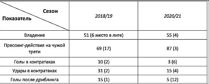 Из визуальных впечатлений можно отметить небольшой прогресс в способности перекрывать линии передач соперника с фланга в центр поля, но данных, чтобы подтвердить этот тезис, нет.
