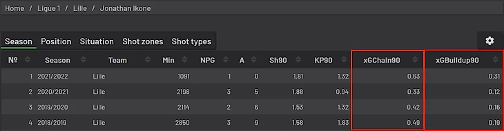 Зато в последние полгода Иконе как никогда прежде много участвовал во владениях команды – xGBuildup90 (суммарное xG всех владений, в которых участвовал игрок, за вычетом тех, где он исполнил ключевой пас или удар) вырос почти в два раза.