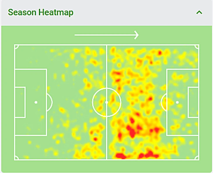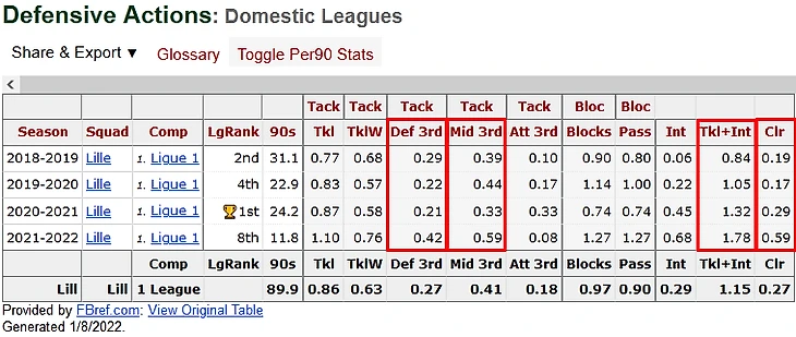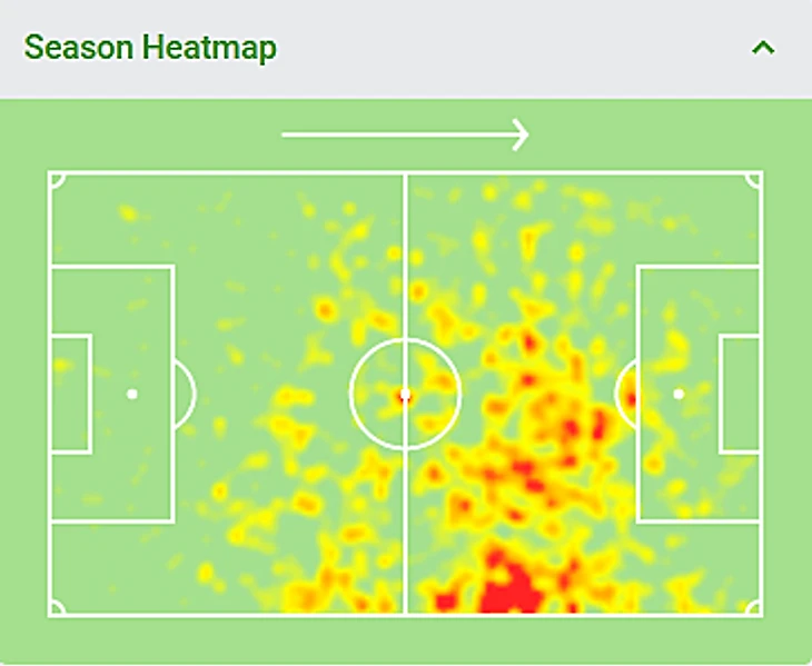 С точки зрения оборонительного вклада кардинальных перемен не было: игрок стал больше прессинговать на трети поля соперника (8,69 действий против 7,07 на 90 минут в предыдущем сезоне), но: