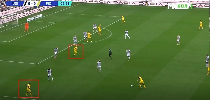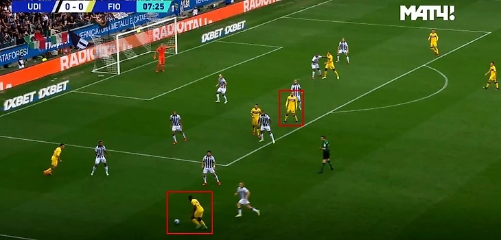 Пригодится «Фиорентине» и отличное умение игрока открываться: Иконе много двигается с фланга в центр и обратно, уходит вглубь для создания вариантов паса, много атакует пространство за спинами соперников. С открываниями под завершение тоже хорошо: правильно выходит под прострелы на ближнюю штангу в частности и в створе ворот в целом.