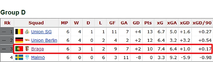 Третье место в группе с двумя "Унионами" — берлинским и бельгийским — и "Мальме". С немцами обменялись домашними победами, с бельгийцами — ничья на выезде (досадная: создали больше соперника) и болезненное поражение дома (забили в первом тайме, рановато и некачественно закрылись и пропустили дважды за последние пять минут). Прямо сейчас "Брага" на третьем месте в чемпионате Португалии — отгадайте, кто на первых двух.