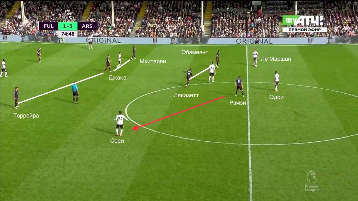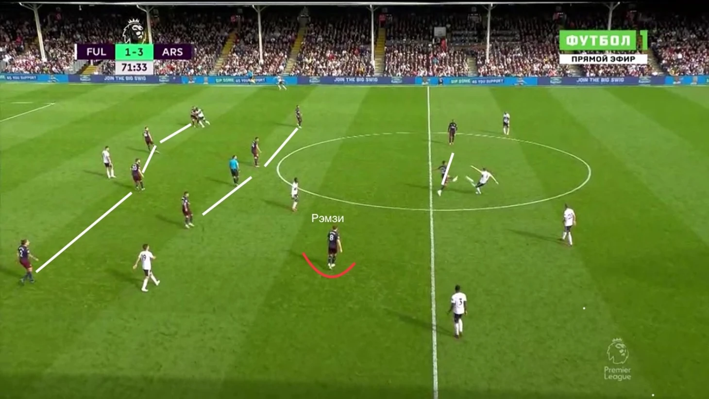 Рэмзи оставил свободного Сери на своем фланге. "Фулхэму" не хватает мастерства, что бы использовать его ошибку.