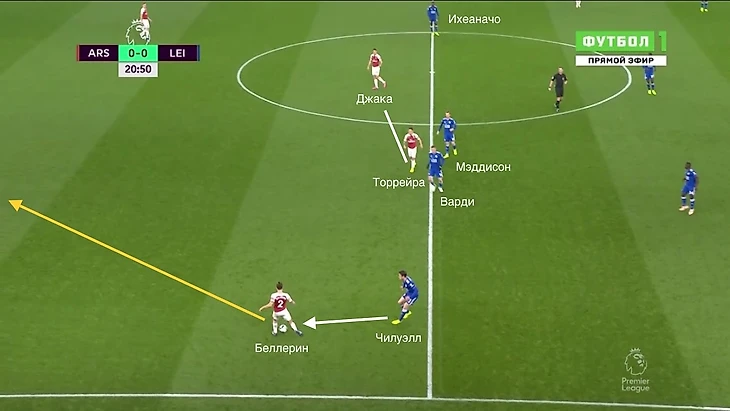 В этом же эпизоде Беллерин получает мяч, его прессингует Чилуэлл, испанец отдает обратную передачу.