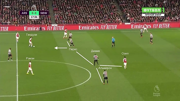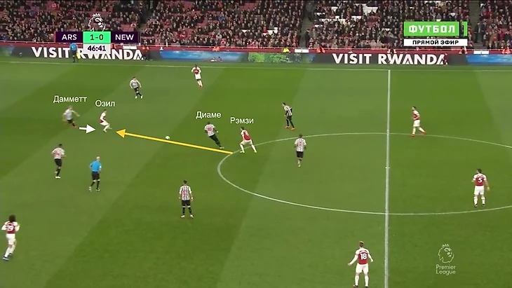Полузащитники "Ньюкасла" были в печальном положении. Они могли игнорировать Озила и давать ему свободу, но сохранять схему и контролировать Гендузи и Рэмзи, либо могли следить за Месутом, но тогда свободу получали француз и валлиец. Оба сценария проигрышные для "Ньюкасла".