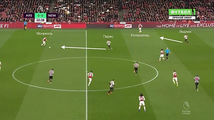 В отличии от "МЮ", "Ньюкасл" не давал свободы вингбэкам "Арсенала". Если крайний полузащитник шел в прессинг, с ним синхронно поднимался и крайний защитник, который атаковал вингбэка "канониров".