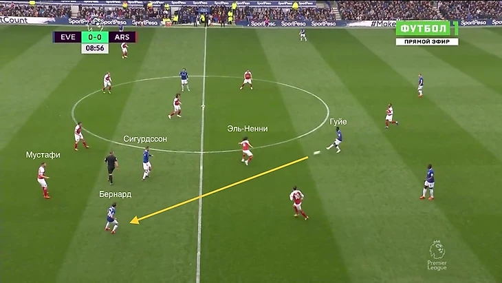 В начале-середине первого тайма четко прослеживалась задача "Эвертона" строить атаки через левый фланг "Арсенала". Мотивы понятны – там находятся Озил и Мэйтленд-Найлз. Даже учитывая, что Месут заметно прибавил в работе без мяча, а англичанин постоянно учится, на бумаге их фланг – подарок для соперника.