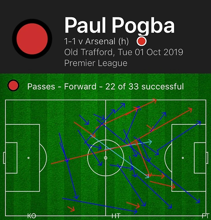 Эмери использовал персональные ориентировки в центе поля. Возможно, именно эта идея и привела его к варианту с 4-3-3, чтобы 1-в-1 играть с треугольником в центре поля "МЮ", учитывая, что большую часть матча "Арсенал" оборонялся.