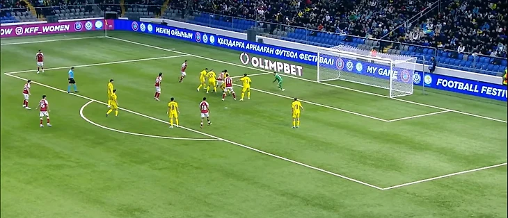 Третий гол забили в нашей следующей же атаке. После аута мяч пылал в воздухе и Исламхан скинул головой на Айымбетова, который в окружении троих умудрился сохранить мяч. Дальше мяч подхватил Дарабаев и отдал на лево Исламхан, который немного продвинул мяч и отдал Вороговскому, а тот в свою очередь навесил точно на голову Айымбетова, с которого по сути и начался эпизод. Гол имени Абата.
