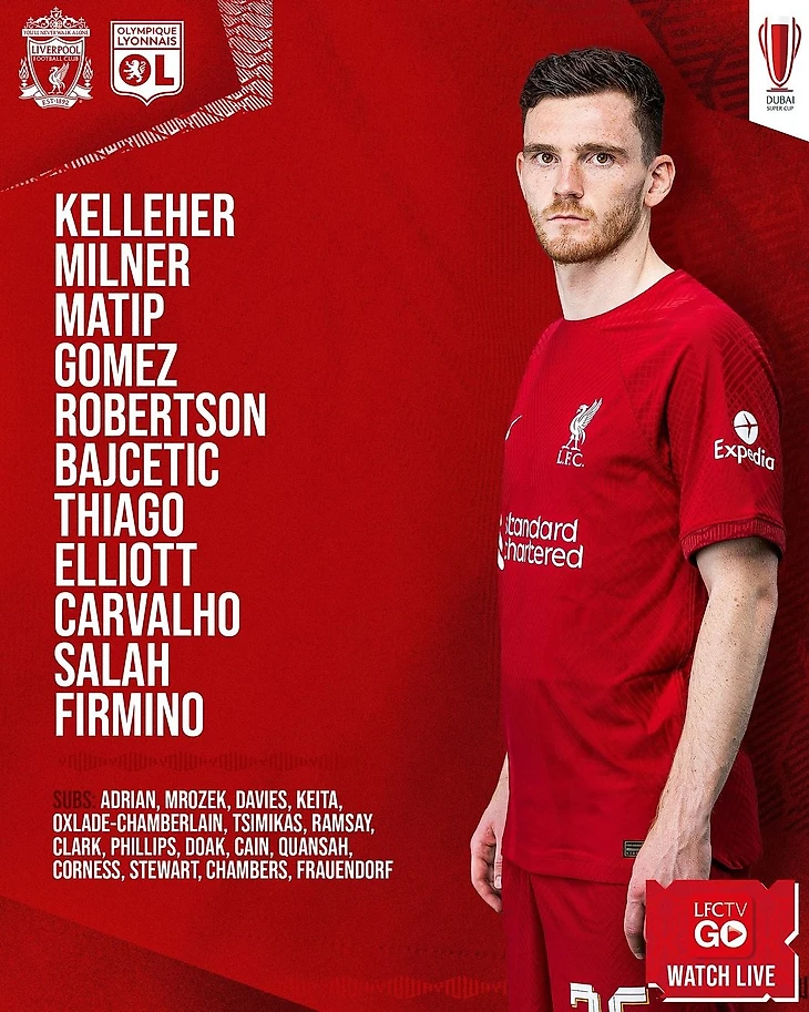 Ливерпуль: Келлехер (Адриан, 46), Милнер (Корнесс, 61), Матип (Филлипс, 46), Гомес (Чамберс, 61), Робертсон (Цимикас, 46), Байчетич (Кларк, 46), Тьяго (Кейта, 61), Эллиот (Фрауендорф, 29 [Рэмси, 46]), Карвальо (Окслейд-Чемберлен, 46), Салах (Доак, 61), Фирмино (Стюарт, 46 [Кэйн, 73]).