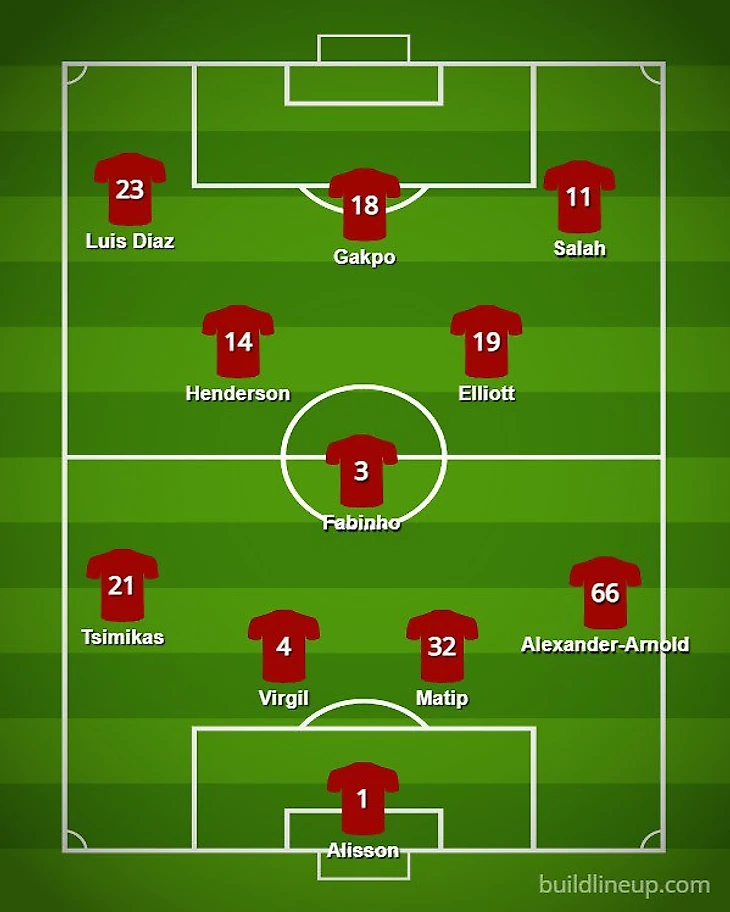 «Ливерпуль» 4:3 «Тоттенхэм» (30 апреля): Алиссон, Александер-Арнольд, Конате, Ван Дайк, Робертсон, Фабиньо, Эллиотт, Джонс, Диас, Салах, Гакпо.