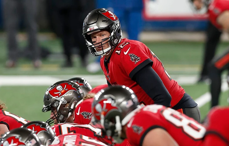 Величайший квотербек всех времён – Том Брэди встречается с великим Патриком Махоумсом. О величии Махоусма, возможно, ещё рано говорить, но то, что он один из самых ярких спортсменов NFL можно говорить уверенно. MVP регулярного сезона, MVP Супербоула и не стоит забывать, что он быстрее всех в истории NFL сделал первые 100 пасовых тачдаунов и 10 000 ярдов.