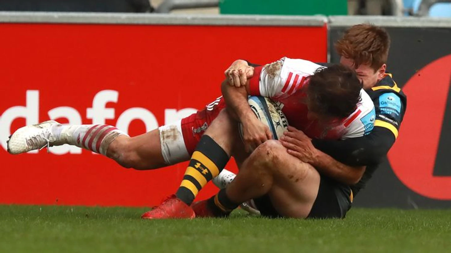 Вроде бы 76 минут прошло, Арлекинс уже ничего не надо в этом матче, уверенная победа в кармане. Но нет, Смит гонит своих партнеров вперёд. На второй минуте после сыгранных 80, Арлекинс несётся вперёд. Заработав штрафной, Смит решает, что надо бы поиграть ещё его партнерам и выбивает мяч в аут для розыгрыша коридора. Элиа Элиа (16 номер) успешно вводит мяч, получает его обратно и в созданном его партнерами моле движется к зачетке. За 2 метра до зачетки в него вмещается сбоку, а это запрещено делать, Том Уиллис. Арлекинс всё-таки вошли в зачетку, но мяч не приземлили на газон, а приземлили Тома Уиллиса под мячом. Попытки вроде нет, но судья даёт жёлтую карточку Уиллису и присуждает 7 очков гостям. Пенальти-трай, так это звучит на английском. Итоговый счёт 17-49 в пользу Арлекинс.
