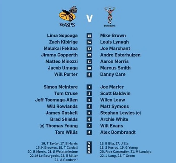 Из всех игр 7-го тура, эта игра проходила в самом высоком темпе. Скорости были сумасшедшими. Матч смотрелся на одном дыхании. Как вы помните, у Уоспс в заявке на этот матч было 9 запасных игроков, Алекс Гудвин, новичок клуба, который должен был придать лишний заряд бодрости и энергии игрокам команды. Возможно он и придал этот заряд бодрости, но вот у Арлекинс этот заряд был ещё выше. Они и ломанулись, именно ломанулись, а не побежали, пошли или любое другое слово, характеризующее движение вперёд. На 6 минуте Уилл Эванс (7 номер) заземлил первую попытку в матче. Скотт Болдвин (2 номер), а затем Аарон Моррис (11 номер) стремительно просвистели с мячом 22 метра, и когда Дэнни Кэр (9 номер) собирался начинать очередную фазу атаки, Эванс быстренько схватил мяч и набрал первые 5 очков для команды. Несбавляя обороты, Арлекинс продолжили свои стремительные атаки, и результат не заставил себя долго ждать. Спустя 10 минут после первой попытки случилась и вторая.