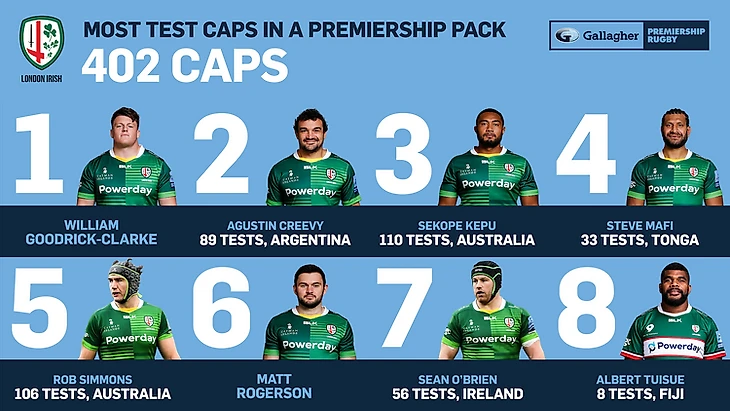 Этот неоднозначный матч в плане статистики проходил под дождем. С одной стороны, гости больше владели мячом, больше атаковали, с другой стороны у Айриш было больше зеленого на форме, что наверное и помогло сделать больше захватов соперника и помешать набрать много очков. А возможно и то, что у них вышли очень опытные нападающие. Ведь все 8 нападающих в сумме провели 402 игры за сборные, побив предыдущее достижение в 372 матча для нападающих. Нападающие Эксетера установили его 1 мая 2016 года. Вот эти герои: