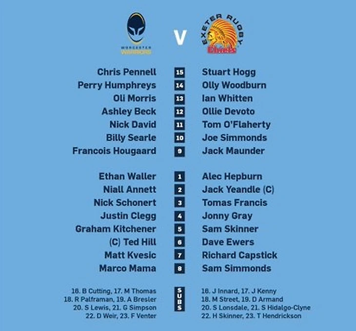 Следующий матч, который я оборзею, то есть сделаю обзор будет Вустер Уорриррз против Эксетер Чифс.