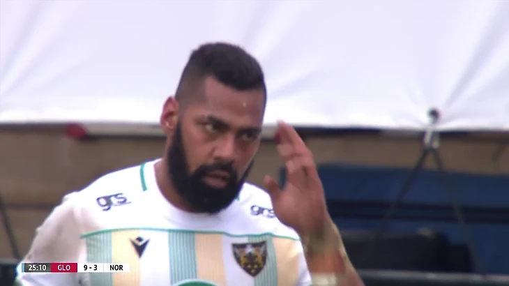 Между забитыми штрафными Твелвтриза Нортхемптон все-таки занёс попытку. Это сделал Такеле Наияраворо (11 номер). Нортхемптон очень долго атаковал, и только 16 фаза атаки завершила это затяжное наступление. Алекс Митчелл на этот раз отдал точный пас Рори Хатчинсону (13 номер), который в свою очередь продолжил комбинацию из 4 быстрых пасов между бэками, последний из этих пасов вывел Наияраворо на пустое пространство, где ему даже не пришлось бежать для попытки. Дэн Биггар ударил уж очень не точно при пробитыми реализации. А вот спустя пару минут он был точен со штрафного.