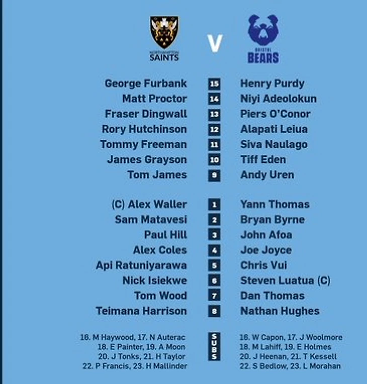Воскресная сессия начнётся на Франклин’с Гарденс, где Нортхемптон Сайнтс(5) примут Бристоль Бирз(1).