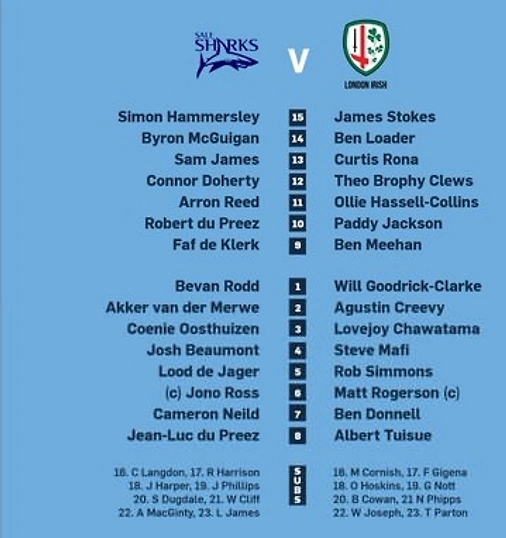 После поражение на Мадейски Стэдиум со счётом 23-25 в апреле 2015 года, Сэйл Шаркс выиграли 7 подряд матчей у Лондон Айриш. Лондон Айриш проиграли все 7 раз на ЭйДжэй Белл Стэдиум.