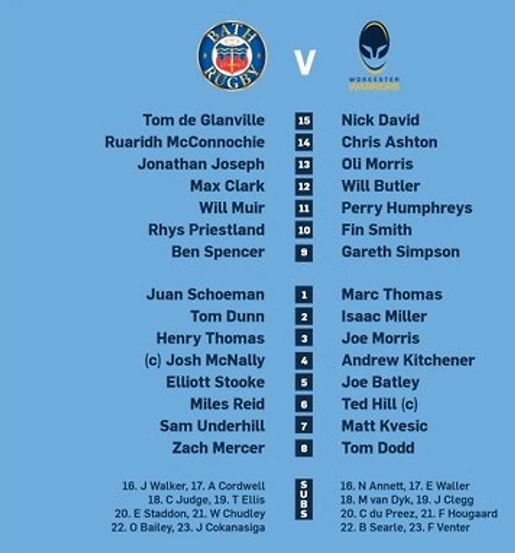 У Бата вернётся в состав Рис Пристланд, а у Вустера выйдет в основе один из самых юных дебютантов Премьершипа Фин Смит, который дебютировал 3 недели назад, выйдя на 76-й минуте в матче против Глостера.