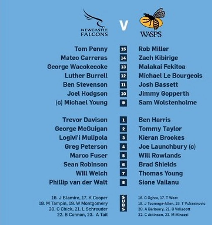 Алекс Тэйт может провести 250-й матч за Ньюкасл. А у Уоспс возвращается на поле Алфи Барбери.
