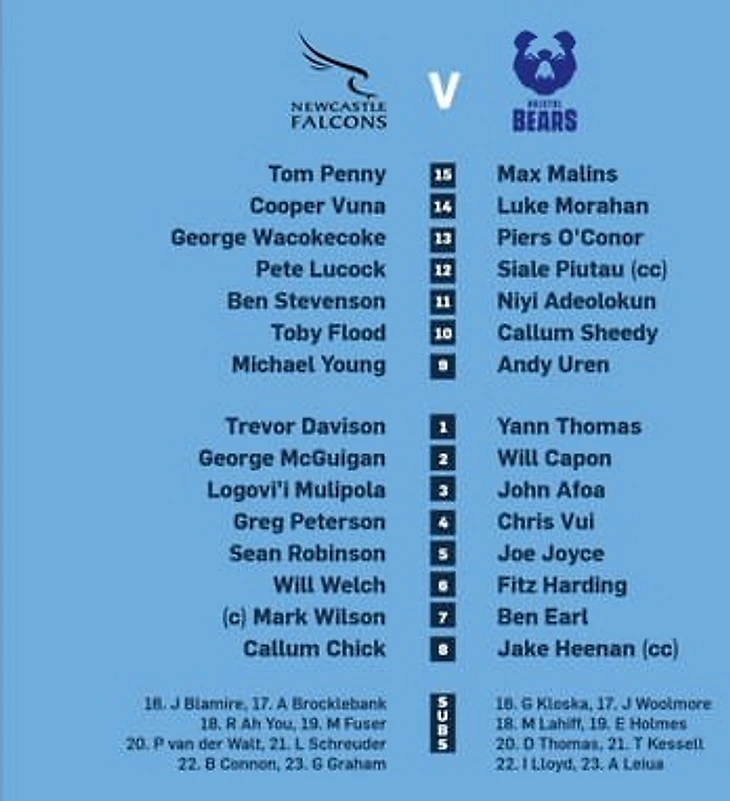 Параллельно с предыдущим матчем стартует последний матч субботы, который пройдёт на Кингстон Парк, где местные Ньюкасл Фалконс(10) примут Бристоль Бирз(1).
