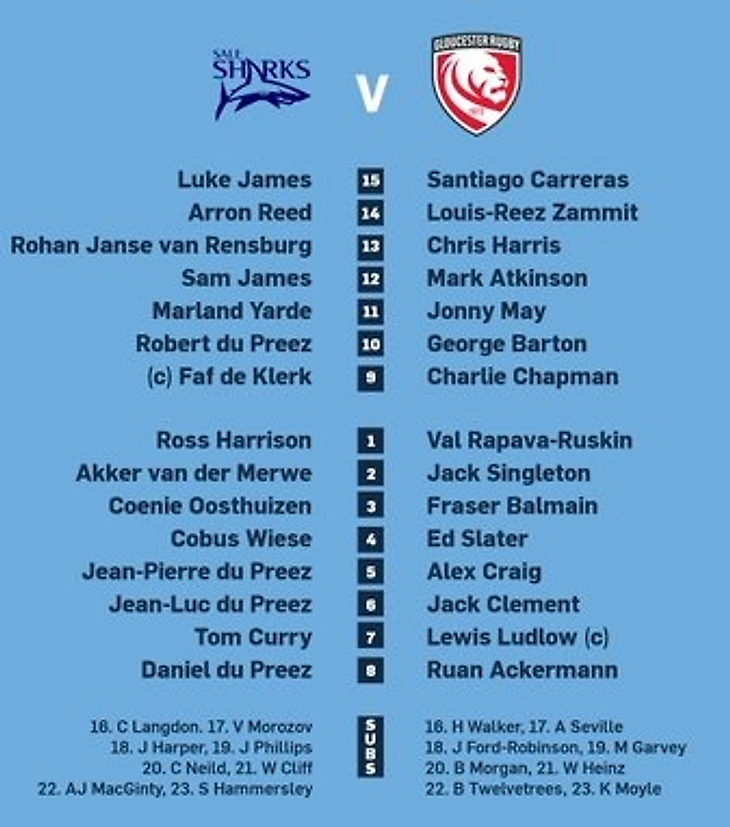 Параллельно с предыдущим матчем начнётся поединок на ЭйДжэй Белл Стэдиум, где Сэйл Шаркс(3) примут Глостер(11).