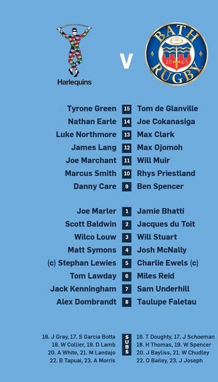 Арлекинс обыграли Бат 28-15 на Рекреэйшн Граунж в 8-м туре Премьершипа и не обыгрывали их дважды в одном сезоне после сезона 2015/16. Бат выиграл два последних визита на Твикенхэм в Премьершипе, а вот три раза подряд там побеждали в период 1993-95 годов, а это были времена существования Courage League.
