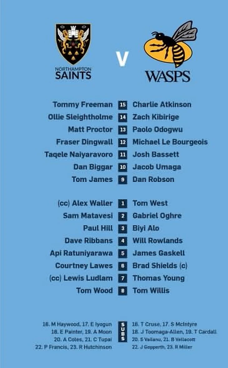 Завершит субботнюю программу встреча на Франклин’с Гарденс, где Нортхэмптон Сайнтс(5) примут Уоспс(8).