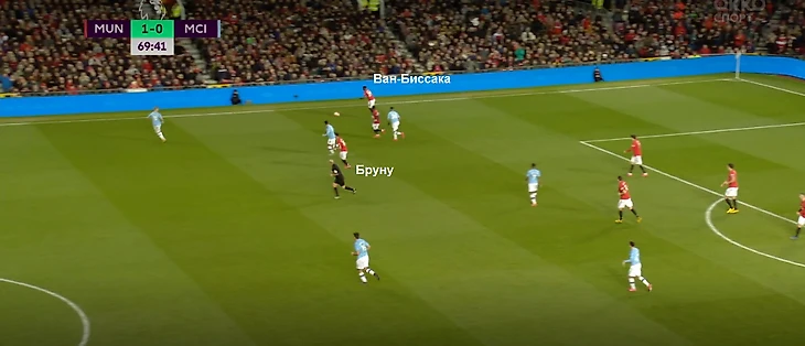 Особенно стоит обратить внимание на подключение Бруну Фернандеша. В момент передачи Ван-Биссаки он был на своей половине поля.