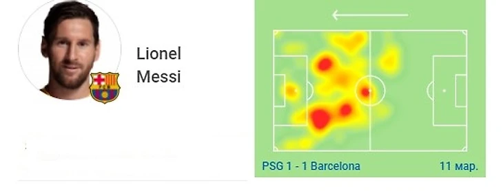 По карте усредненных позиций мы также можем увидеть, что позиция Мбаппе была самой высокой в команде. Кроме этого, по количеству касаний в составе «ПСЖ» Килиан на первом месте – 66 за игру (ист. sofascore).
