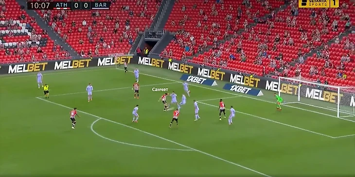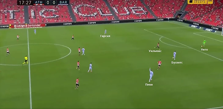 В первые 10 минут каталонцы попробовали включить агрессивный прессинг, но баски показали, что готовы использовать высокое расположение оборонительной линии «Барсы». Это оправдано: такой скоростной игрок, как Иньяки Уильямс, вполне мог убежать в открытое пространство от центральных защитников. И по ходу встречи нападающий «Атлетика» продемонстрирует свое преимущество в скорости против Эрика Гарсии.