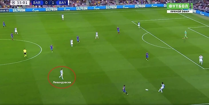 В результате Дэвис выбивает мяч из его ног, Коман подхватывает и отправляет на Гнабри, вбегающего в пространство между Пике и Бальде. Серж попадает в штангу, и мяч снова отскакивает в сторону Левандовски, который на замахе убирает защитника и наносит результативный удар по воротам.