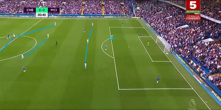 При розыгрыше Менди от ворот через короткий пас «горожане» стремились вынудить игроков «Челси» отдавать передачу во фланг, где им было бы проще отобрать мяч. К слову, уже на 5-й минуте встречи Менди впервые примет решение сыграть длинной передачей вперед.