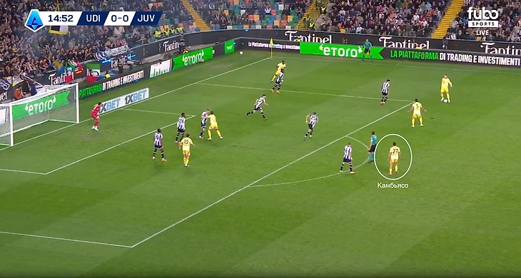 Ну и в заключение, еще один пример влияния индивидуальных действия Камбьязо не только на развитие атаки «Ювентуса», но и на счет матча.