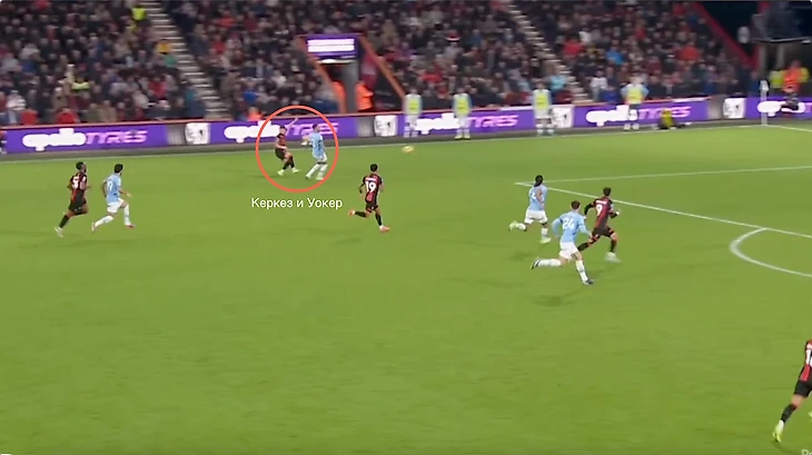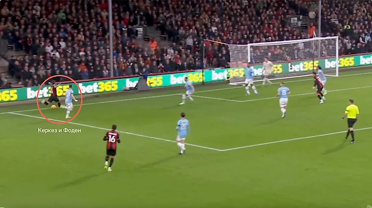 Второй гол «Борнмута» снова через правый фланг «Сити». Хозяева успешно провели атаку с участием того же Керкеза, выведя его один в один с Уокером. Кайл не сумел заблокировать прострел в штрафную площадь.