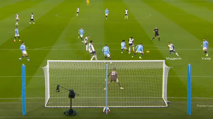 Второй гол – неудачный выход «Сити» из-под давления. «Тоттенхэм» хорошо накрыл один в один, вынудил ошибиться. В итоге, ситуацию быстро довели до штрафной площади, где вывели Мэддисона на ударную позицию. Уокер не успел перестроиться в оборону и накрыть Джеймса.