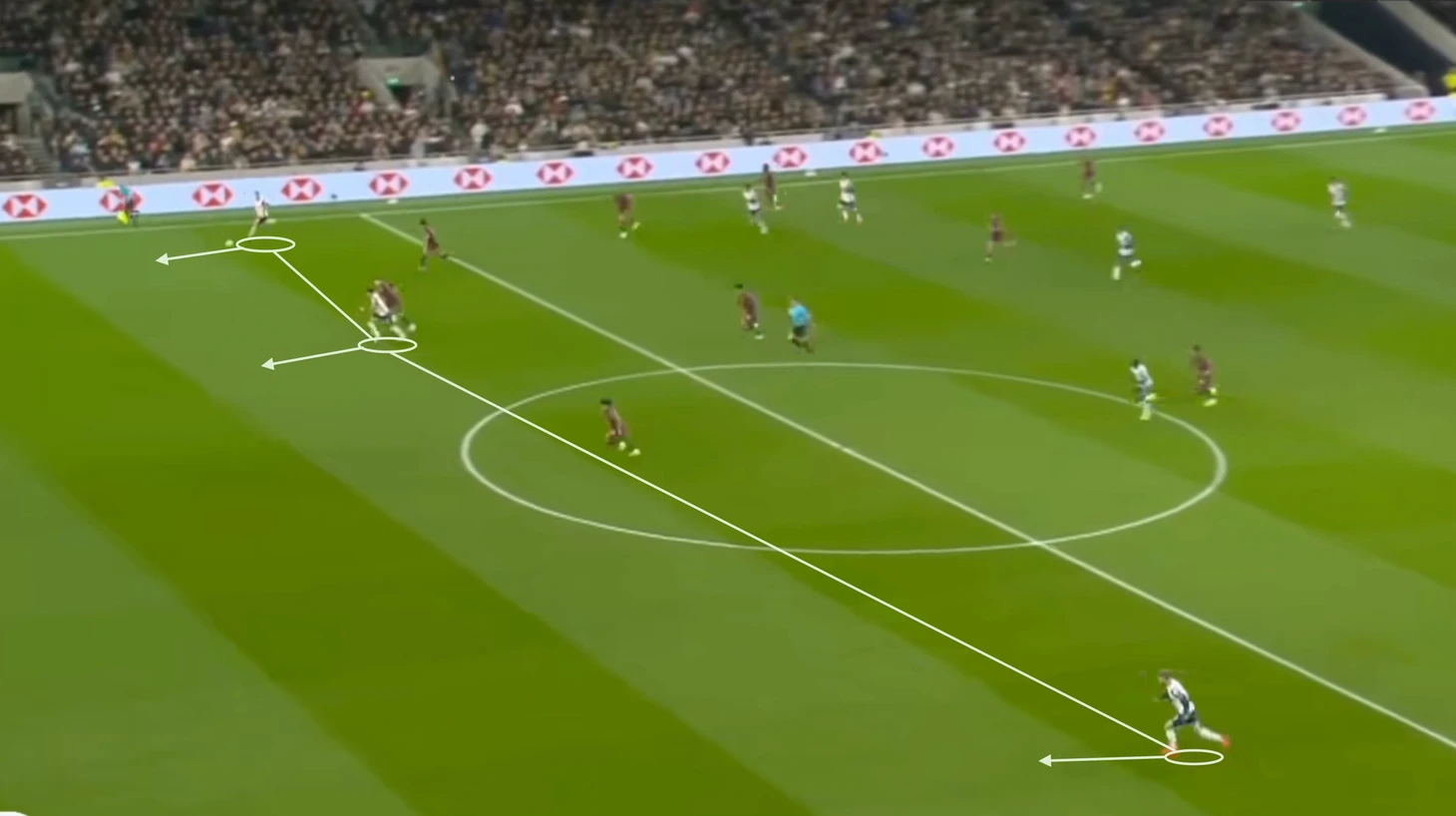 Третий гол – Уокер дважды проигрывает единоборства за мяч: сначала Кулусевски, затем вместе с Аканжи не успевают накрыть Сона, который выдал мяч на пространство Кулусевски.