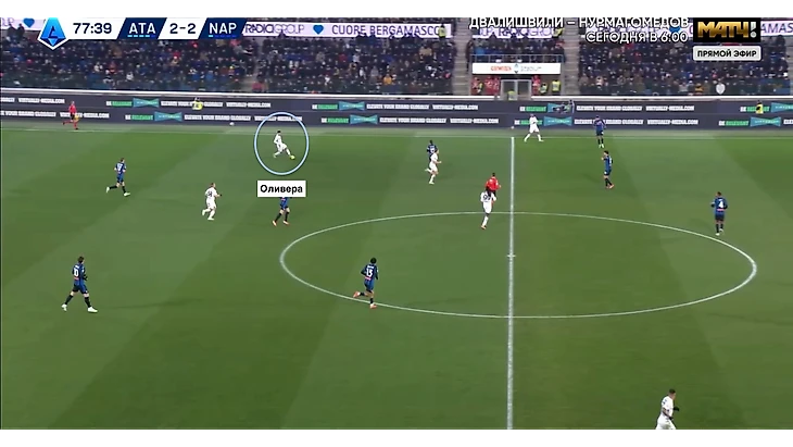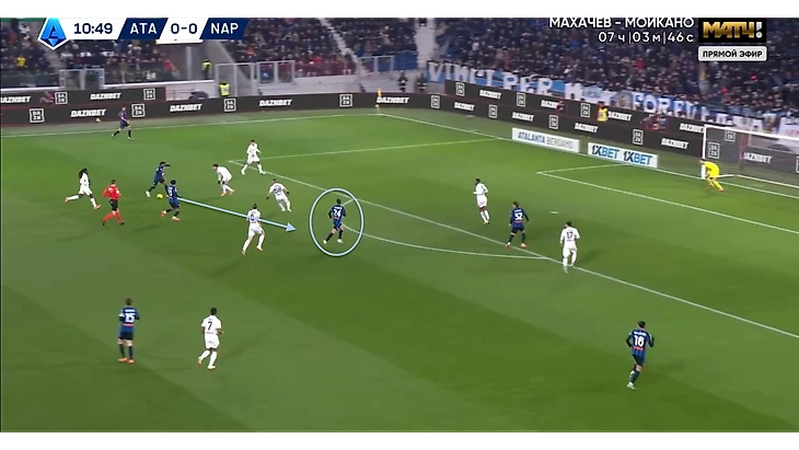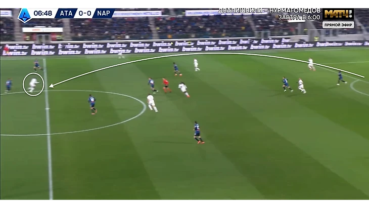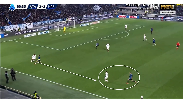 В ситуации с третьим забитым голом «Наполи» отлично воспользовался тем, что «Аталанта» долго перестраивалась после своей неудачной атаки. Таким образом, левый крайний защитник неаполитанцев спокойно дошел до средней трети поля, откуда началось развитие голевой атаки.