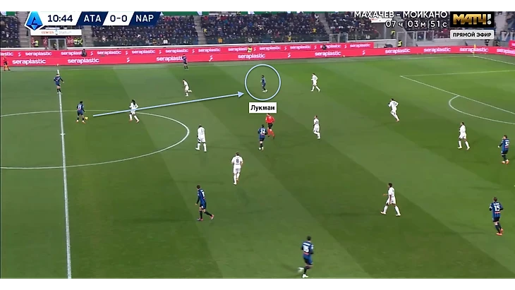 Безусловно ему было комфортнее получать мяч, когда «Наполи» оборонялся в среднем блоке, или поднимался встречать высоко. Тогда у Лукмана было больше пространства получать мяч и двигаться с ним. Когда же «Наполи» оборонялся в низком блоке, против игрока действовали плотнее, создавая против него ситуации с численным преимуществом.