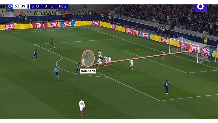 Против «Штутгарта» в ЛЧ свой четвертый забитый гол Усман снова забил из позиции по створу ворот, находясь в штрафной площади.