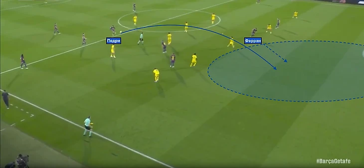 Здесь Педри забросил на открывающегося Феррана. Испанец едва не оформил хет-трик, но попал в перекладину.