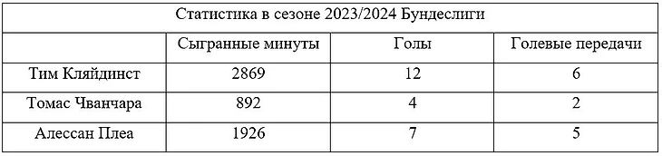 Сравнение результатов нападающих "Боруссии" Мёнхенгладбах в прошлом сезоне
