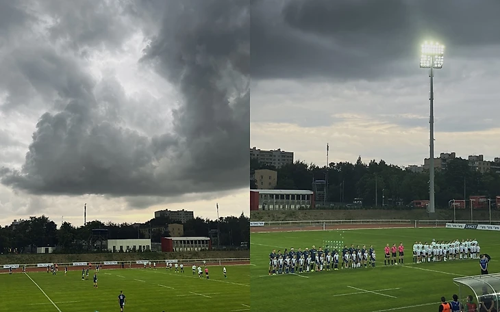 Первые 20 минут погода разошлась не на шутку – гром и молнии сопутствовали схваткам и молам с прекрасными видами. Можно отметить, что это не помешало командам показать отличную игру: газон высшего класса не размыло, как, например, во время футбола в Воронеже; команды не стали проще играть, опасаясь идти в атаку, а за первые 15 минут занесли по попытке. В кубковых матчах, конечно, любые очки на вес золота, чем и пользовался «Красный Яр», пробивая каждый штрафной.