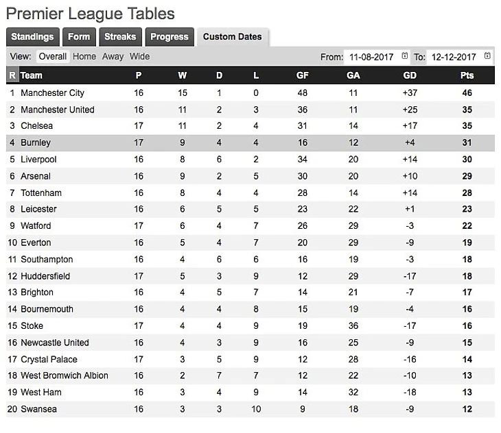 Результаты «Бернли» до «proudest man in proudsville» и после