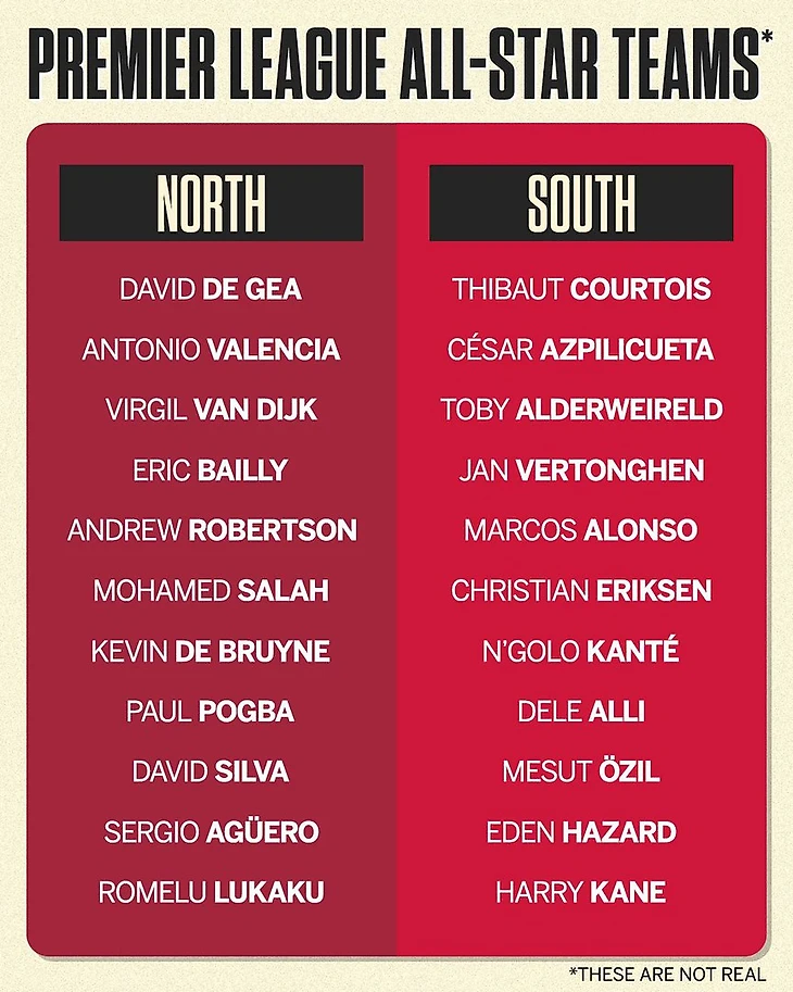 Составы команд «Север» и «Юг» в возможном матче всех звёзд АПЛ от ESPN