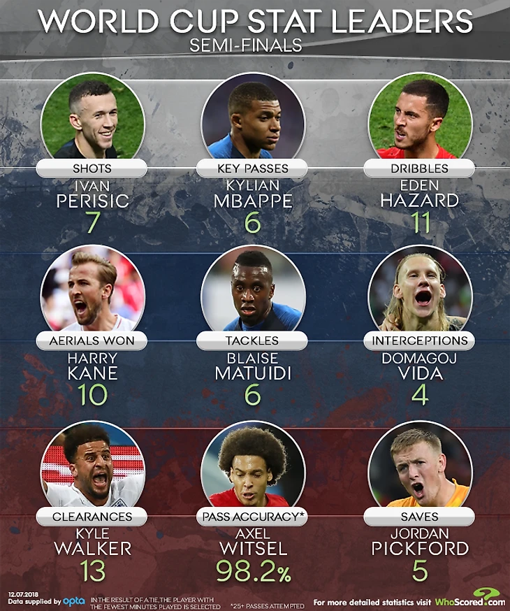Лучшие игроки полуфиналов ЧМ 2018 по различным показателям