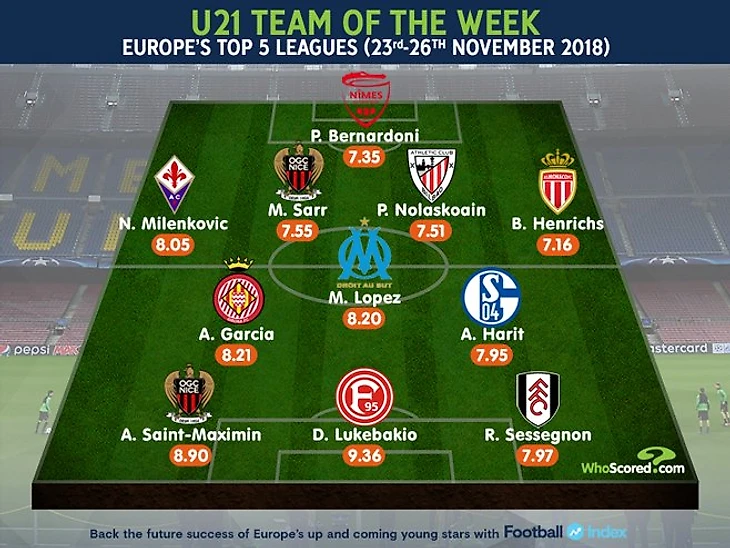 Сборная лучших молодых игроков прошедших выходных в топ-5 лигах Европы от WhoScored