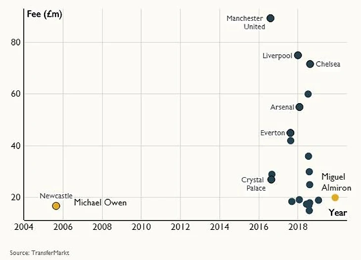 В момент перехода Оуэна в "Ньюкасл", Пеп Гвардиола ещё был действующим футболистом, Рафаэль Бенитес был действующим обладателем Кубка ЛЧ, "Атланты Юнайтед" ещё не существовало, на счету Месси в "Барселоне" был лишь один гол, а Большой Сэм участвовал с "Болтоном" в Кубке УЕФА.